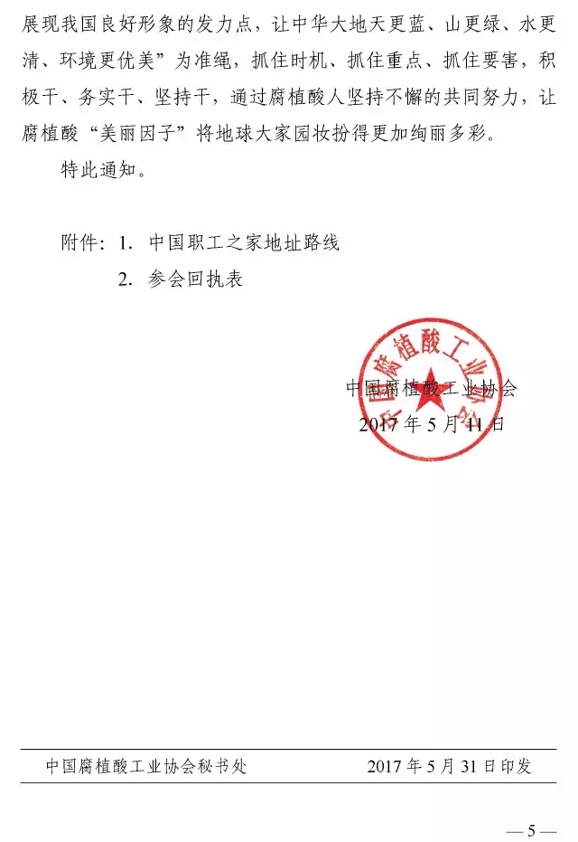 关于召开“中国腐植酸工业协会第六次会员代表大会暨腐植酸绿色革命论坛”的通知