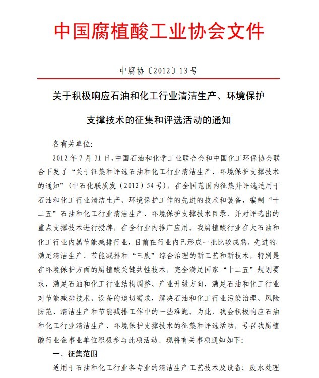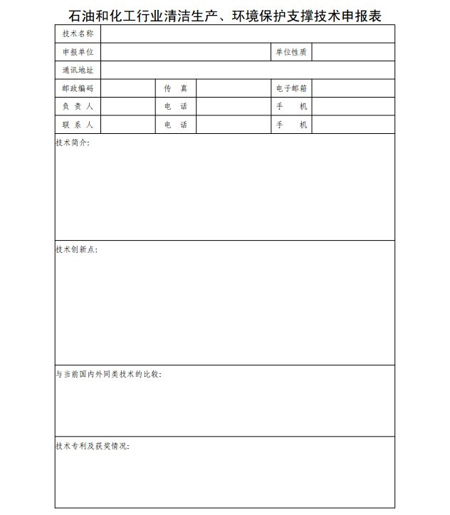 关于积极响应石油和化工行业清洁生产、环境保护支撑技术的征集和评选活动的通知