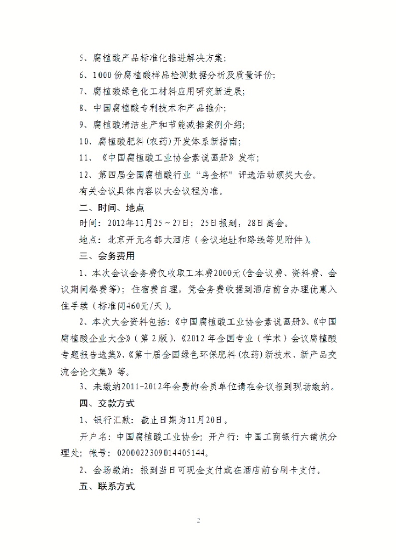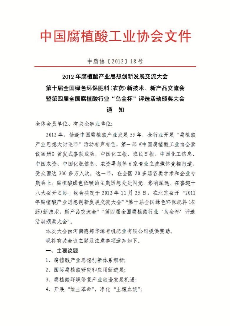 2012年腐植酸行业年会通知