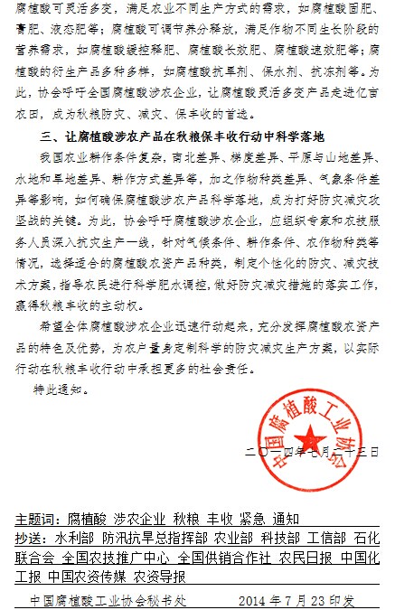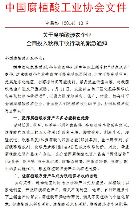 关于腐植酸涉农企业全面投入秋粮丰收行动的紧急通知