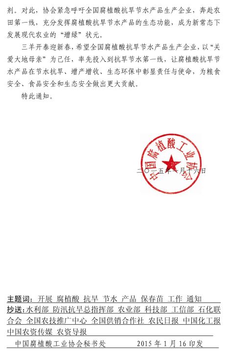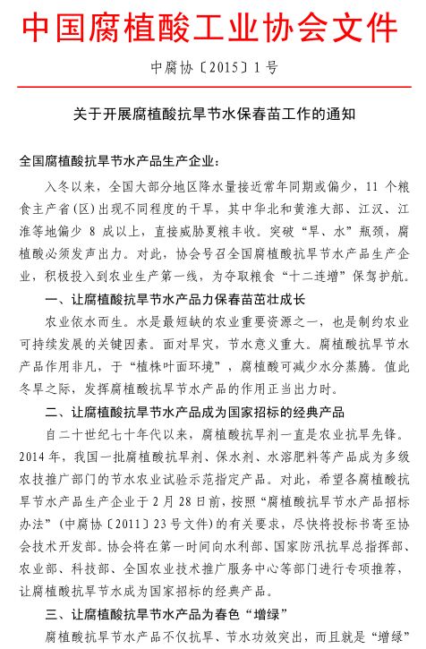 关于开展腐植酸抗旱节水保春苗工作的通知
