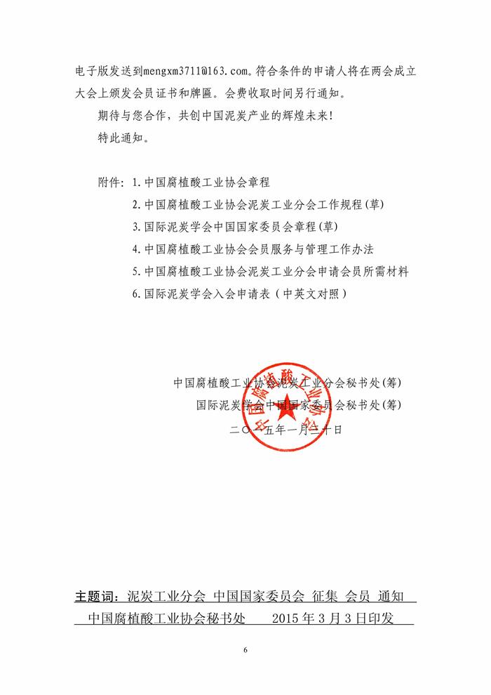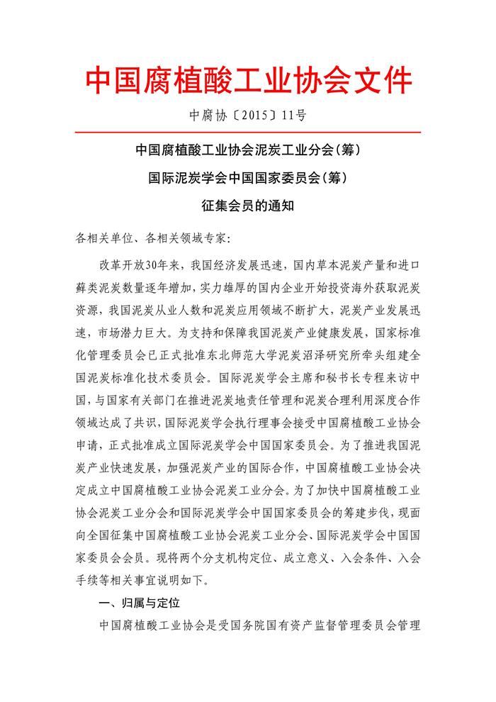 中国腐植酸工业协会泥炭工业分会筹国际泥炭学会中国国家委员会筹征集会员的通知