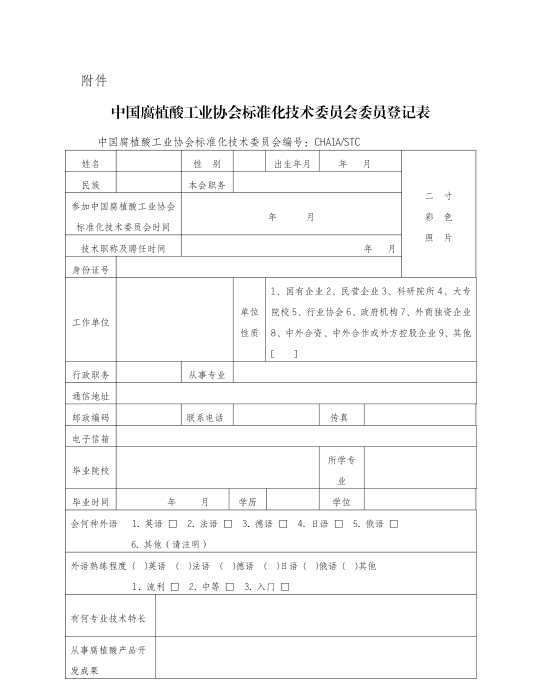 关于扩充“中国腐植酸工业协会标准化技术委员会”委员的通知