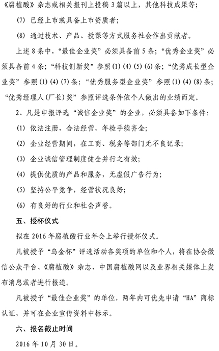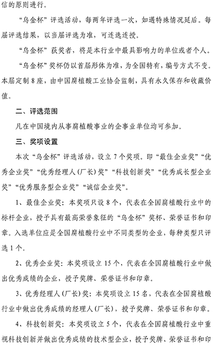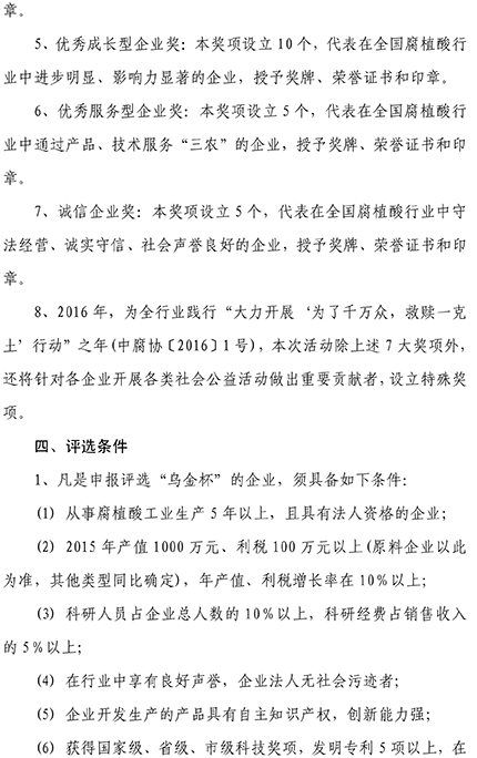关于开展“第六届全国腐植酸行业‘乌金杯’评选活动”的通知