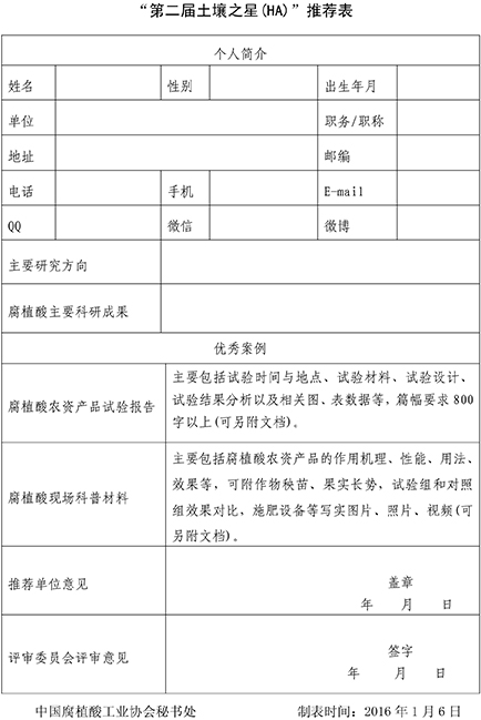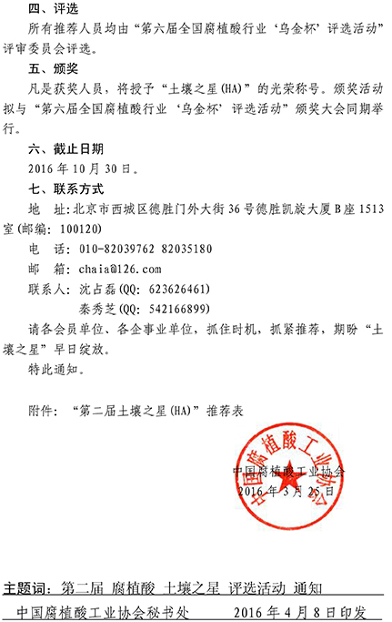 关于开展“第二届全国腐植酸行业‘土壤之星(HA)’评选活动”的通知
