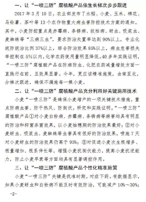 关于精准投放小麦“一喷三防”腐植酸“黄金”产品科学施用的紧急通知