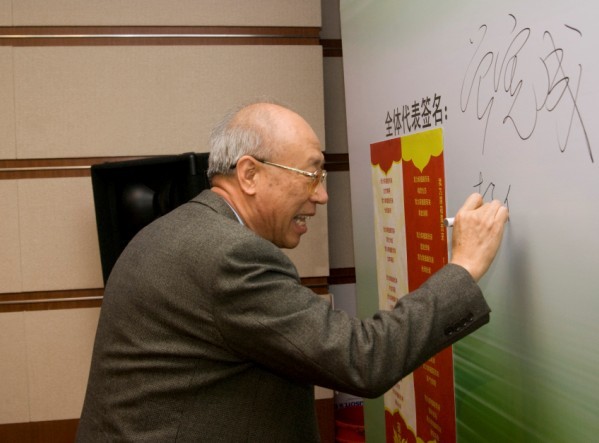杨伟才副会长在中国腐植酸绿色低碳宣言签名版上签名