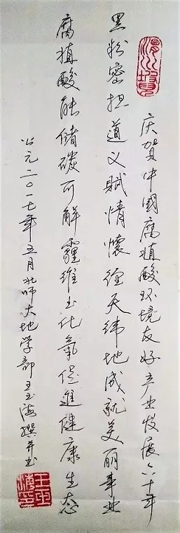导言:今天编发北京师范大学地理科学学部王玉海教授为“中国腐植酸环境友好产业发展60年”题贺的两组寄语,让我们一起欣赏王教授神韵超逸的笔迹,感受王教授对腐植酸的深深情意。